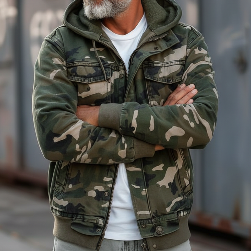 Men's Cargo Jacket with Hood – Camouflage Outdoor Coat