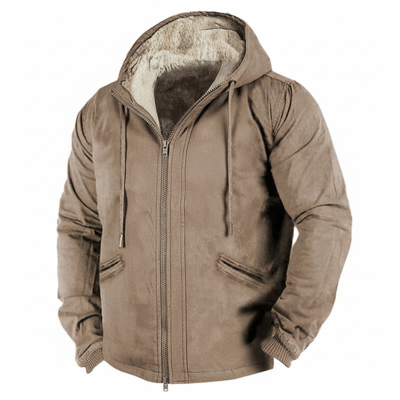 Men's Hooded Winter Jacket – Sherpa Lined Full-Zip Design