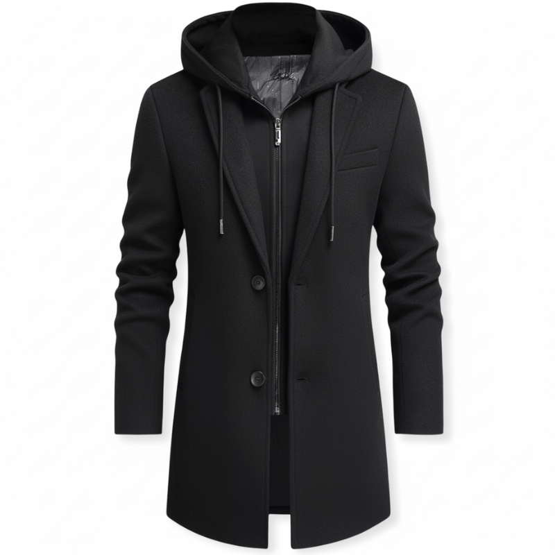 Men's Trench Coat – Double-Breasted Winter Coat with Detachable Hood