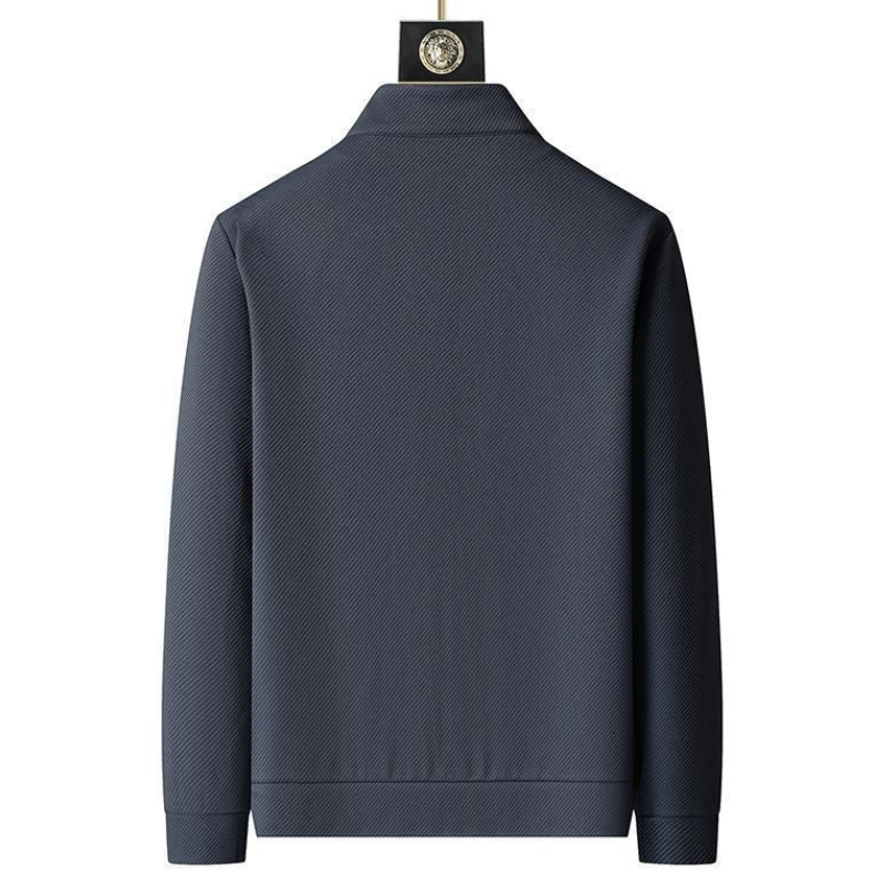 This men’s training suit set features a refined, minimalist design with a zip-up jacket and matching trousers. The elastic fabric provides a clean structure and subtle sheen. Its contemporary cut and tonal detailing create a sleek and versatile look suitable for both active and casual settings.