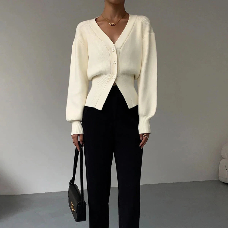 Women's Knit Cardigan with Ribbed Cuffs - Versatile for Casual and Formal Wear